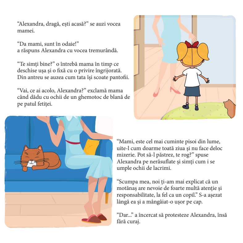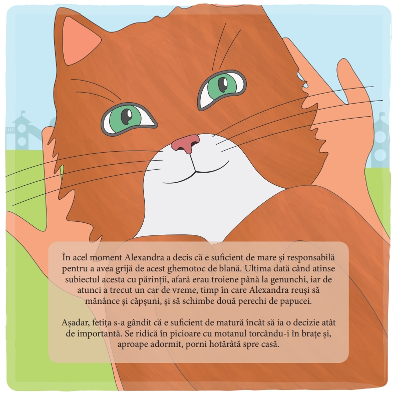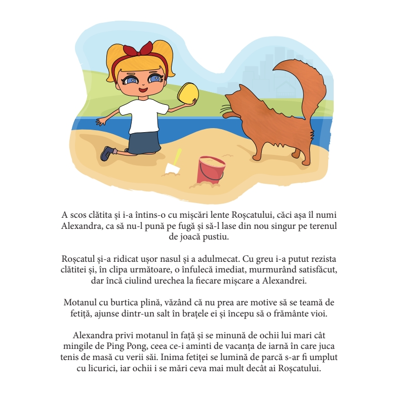 • Setul cuprinde cartea personalizată "Motanul cel Roșcat" care are 24 pagini și jucăria moale Unicornul Rainbow. • În cartea personalizată personajul principal din poveste are numele, sexul, culoarea ochilor și cea a părului, exact ca al copilului dumneavoastră. Poveste ce sărbătorește legătura de prietenie dintre copii și animale. Dornic de a avea un animal de companie, contrar recomandărilor părinților săi, personajul nostru decide că este suficient de matur pentru a face față provocării de a îngriji de un pisoi. O carte captivantă, prin care copiii înțeleg valorile umane, responsabilitatea și prietenia.
