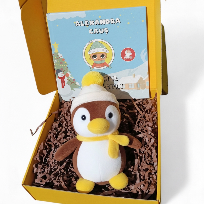 • Setul cuprinde cartea personalizată "Pomul de Crăciun" care are 24 pagini și jucăria moale Pinguinul Sami. • În cartea personalizată, în care personajul principal din poveste are numele, sexul, culoarea ochilor și cea a părului, exact ca al copilului dumneavoastră. Pornit în căutarea unui pom de Crăciun, a ajuns să sărbătorească în sânul naturii. Astfel a decis să-și arate dragostea față de mediul înconjurător eroul poveștii, fiind pus la grea încercare de a alege un brad pentru a decora casa de sărbătoare. O lectură educativă, prin care celor mici le este explicată importanța iubirii și ocrotirii naturii.