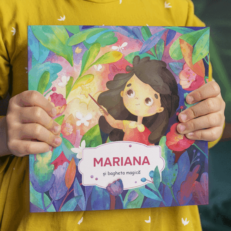 • În cartea personalizată personajul principal din poveste are numele, sexul, culoarea ochilor și cea a părului, exact ca al copilului dumneavoastră. Fetița sau băiețelul - eroul principal, poate face lucruri magice la dorință cu ajutorul unei baghete magice, însă, care se poate reincărca doar cu fapte bune proprii. După câteva aventuri la fetița/băiețelul eroul principal dispare dorința de a-și mai îndeplini doar propriile dorințe și se schimbă focusul pe faptele bune pentru alții.